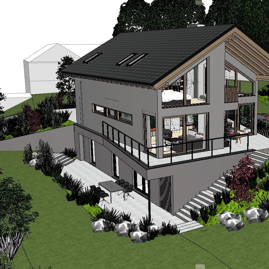 So entsteht ein Haus, das den Alltag der Familie ebenso trägt wie gesellige Abende und Feste mit der Familie. Präzise geplant und nachhaltig gedacht. Denn der Bau wird in Holzständerbauweise umgesetzt.